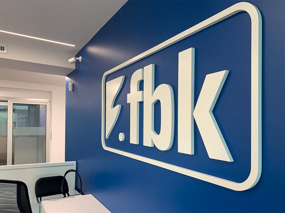 Stampe per la decorazione murale, pannelli in alluminio o pvc, loghi 3D in plexiglass, wayfinding per interni ed esterni, insegne d'esercizio e rivestimenti materici per elementi d'arredo.